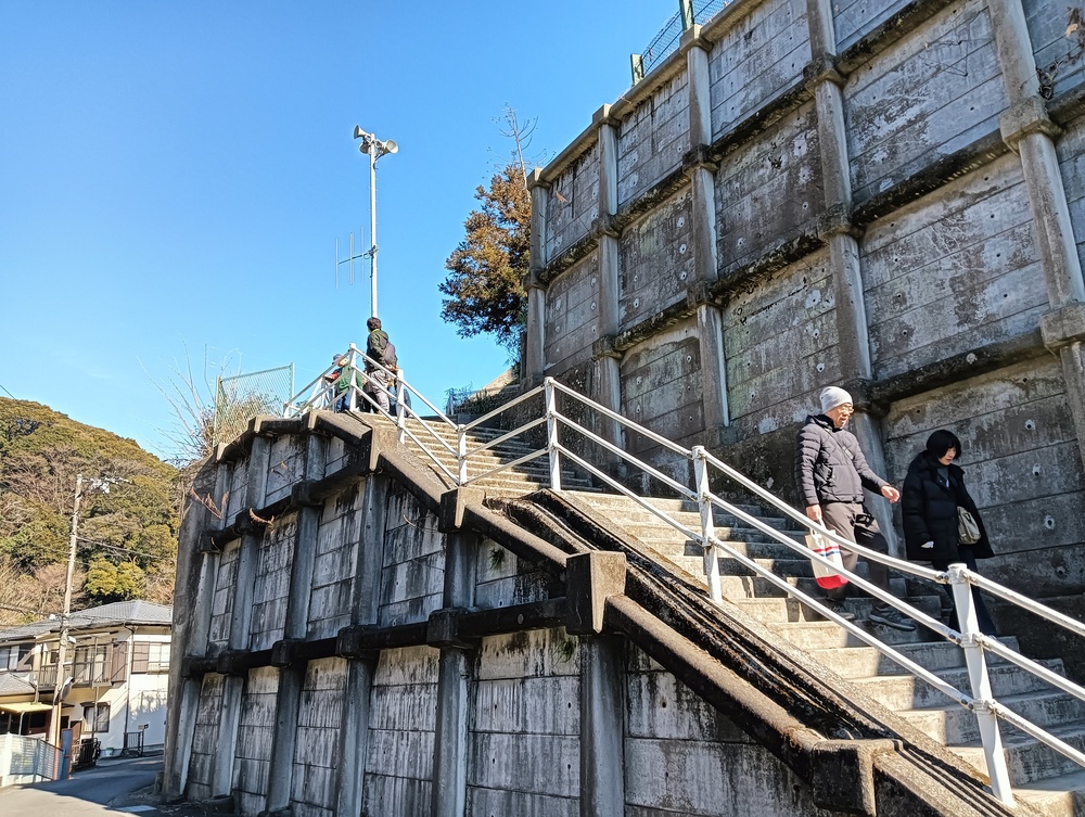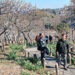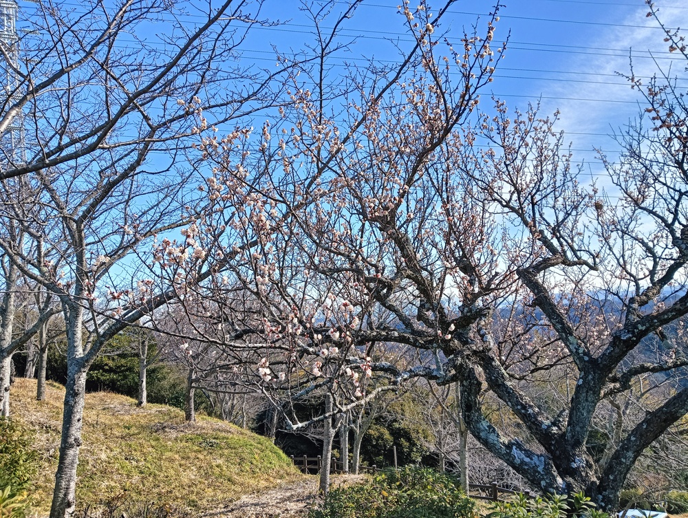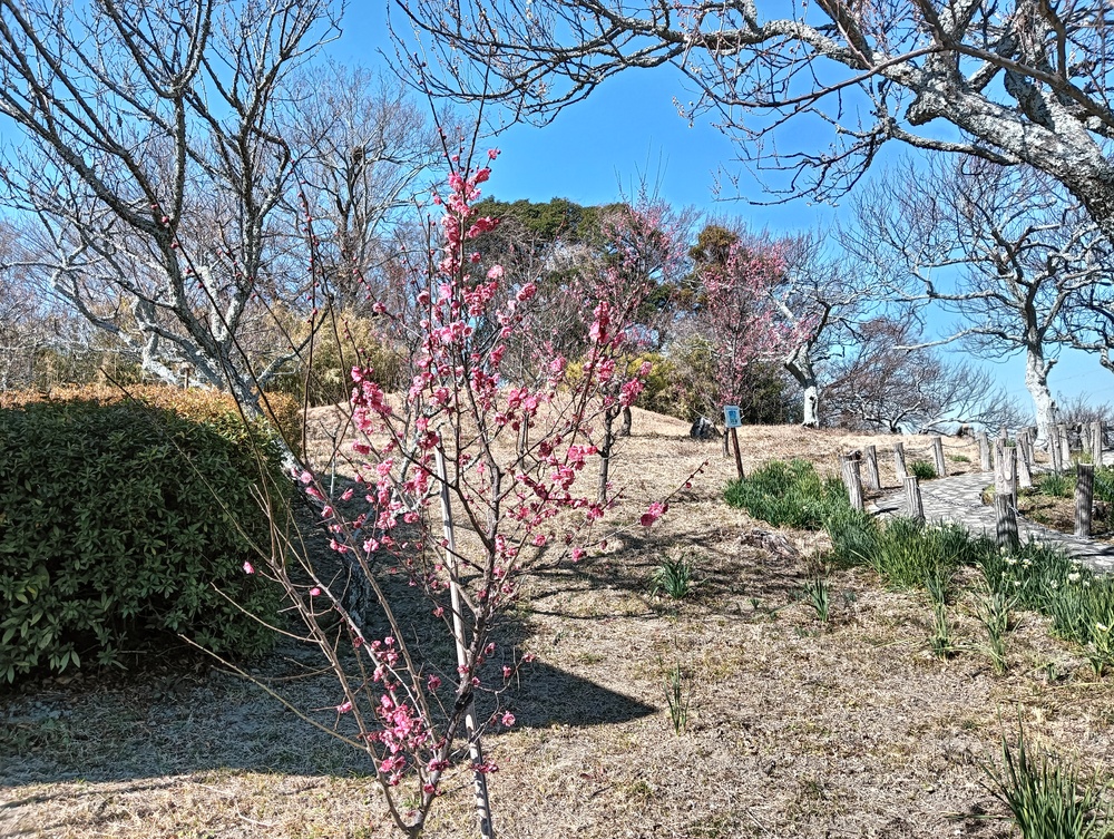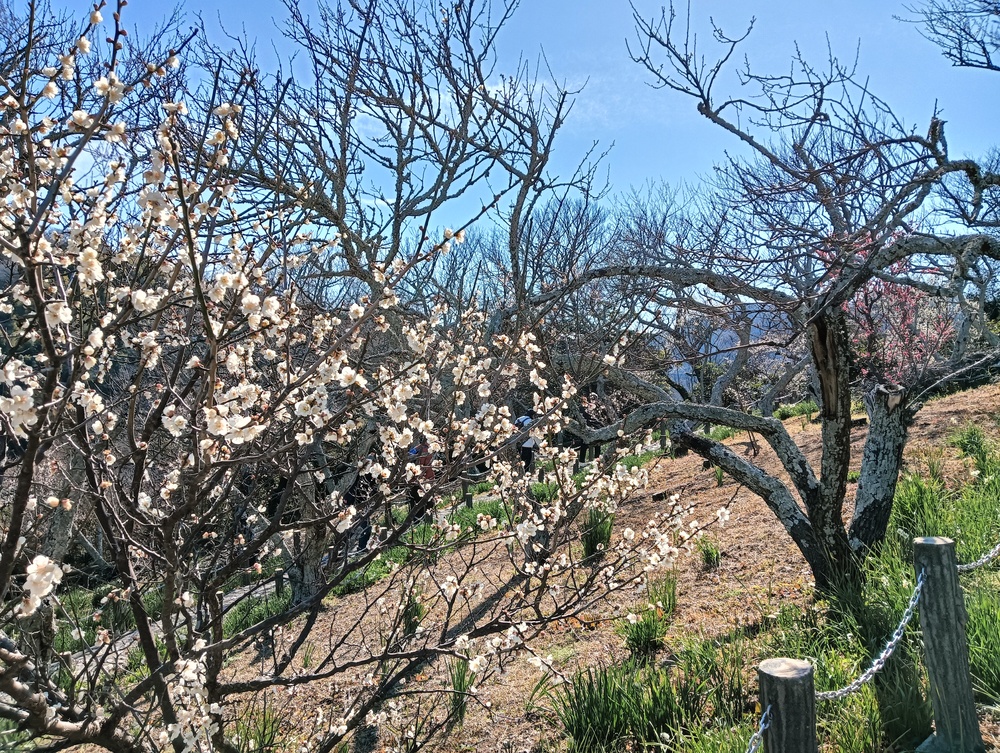 急峻な坂道を登りきると田浦梅の里、ここは1934年(昭和9年)に上皇陛下のご生誕を記念して、地元の有志が700本のウメを植えたのが始まりで、現在は約2,000本以上のウメが咲きほこる名所となっていて、満開には早いが甘い香りに包まれての散策をしました。
