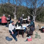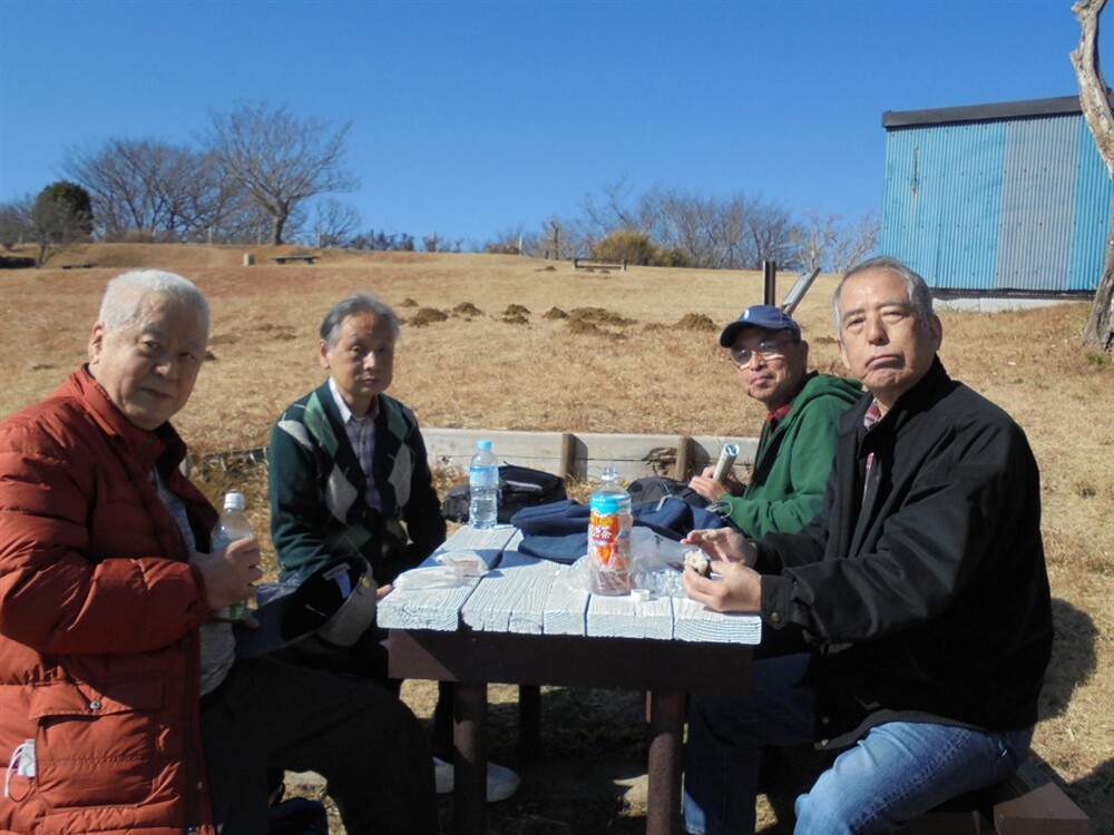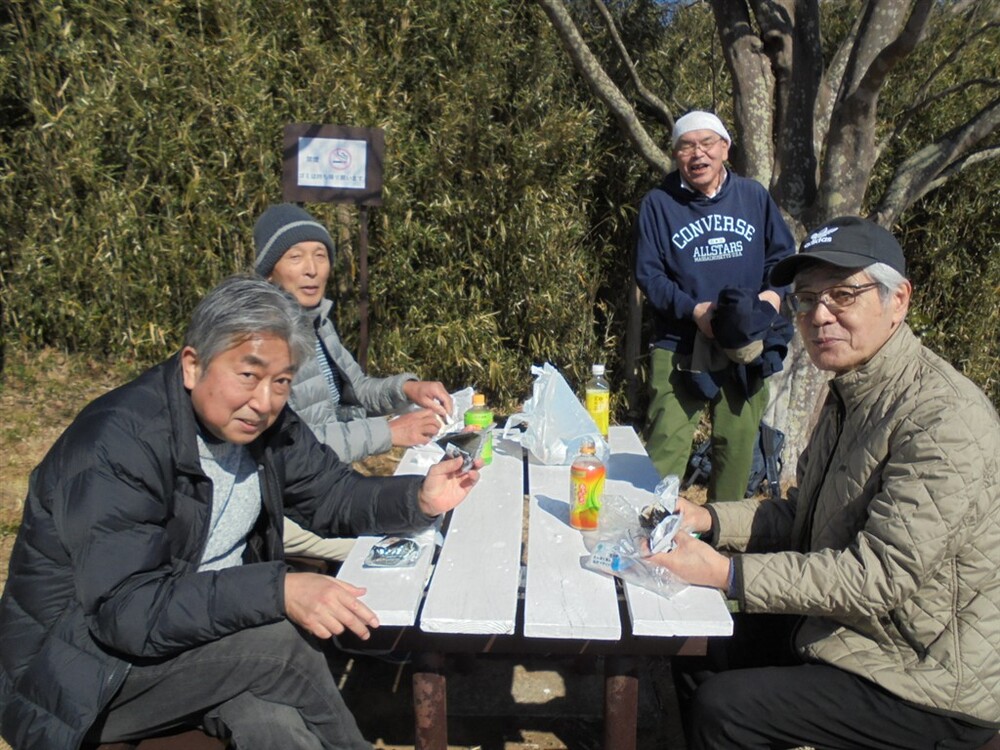 真っ青な青空の下で、急峻な坂道の連続で疲れた体を癒すと共に午後に備えて各自持参の昼食をほおばりました。