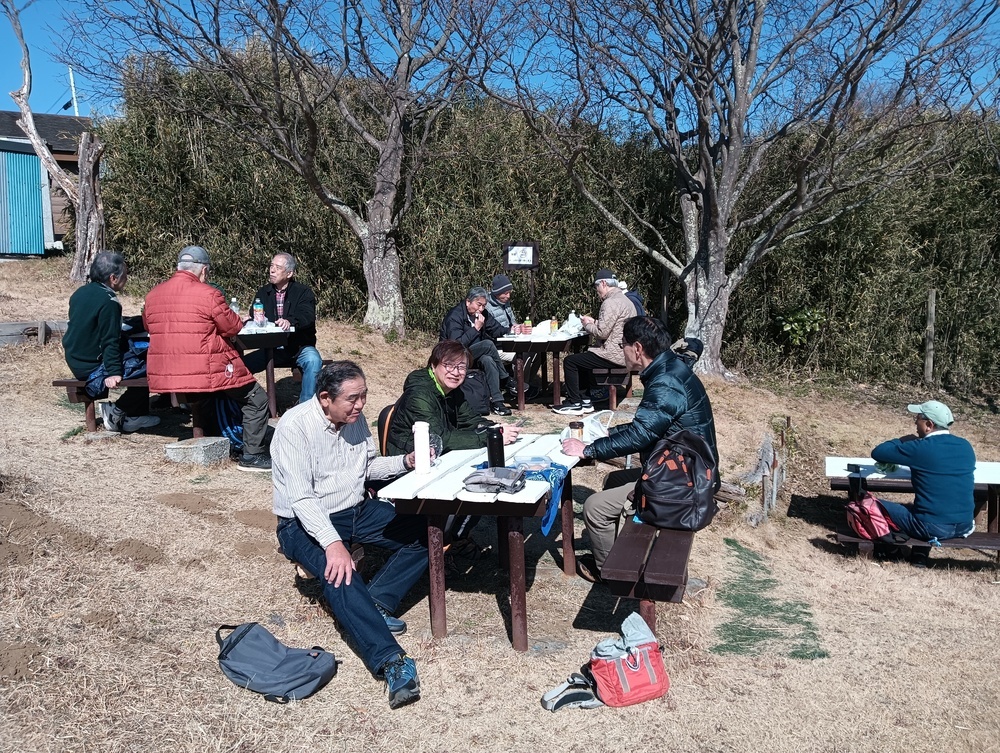 全行程を無事に終え、JR田浦駅に全員無事に到着。幹事から次月の予定説明を受けた後、再会を期して解散となりました。青空と甘いウメの香りに包まれてのややキツイ上り下りでの程良い疲れの楽しい一日となりました。