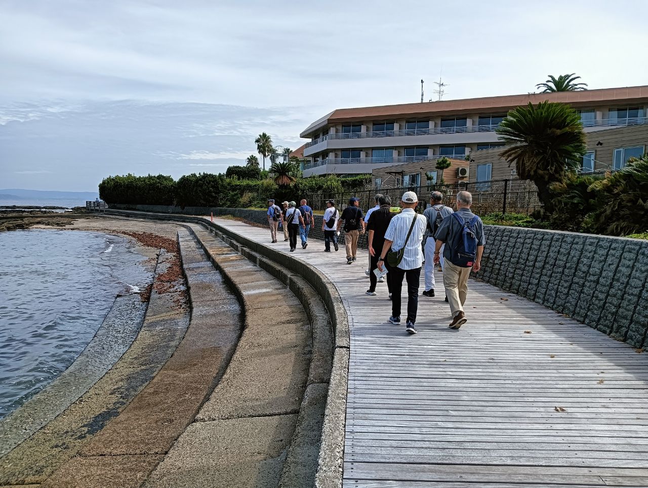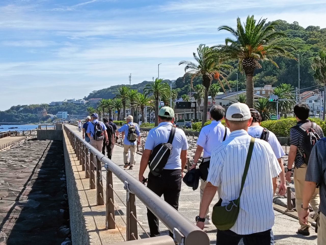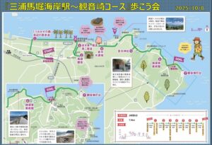 10月8日(水)京急 馬堀海岸駅へ13名のメンバーが集合しました。世話人の宮川さんから本日のコースの案内がされた後、早速海辺の遊歩道“うみかぜの路”を目指しスタート。