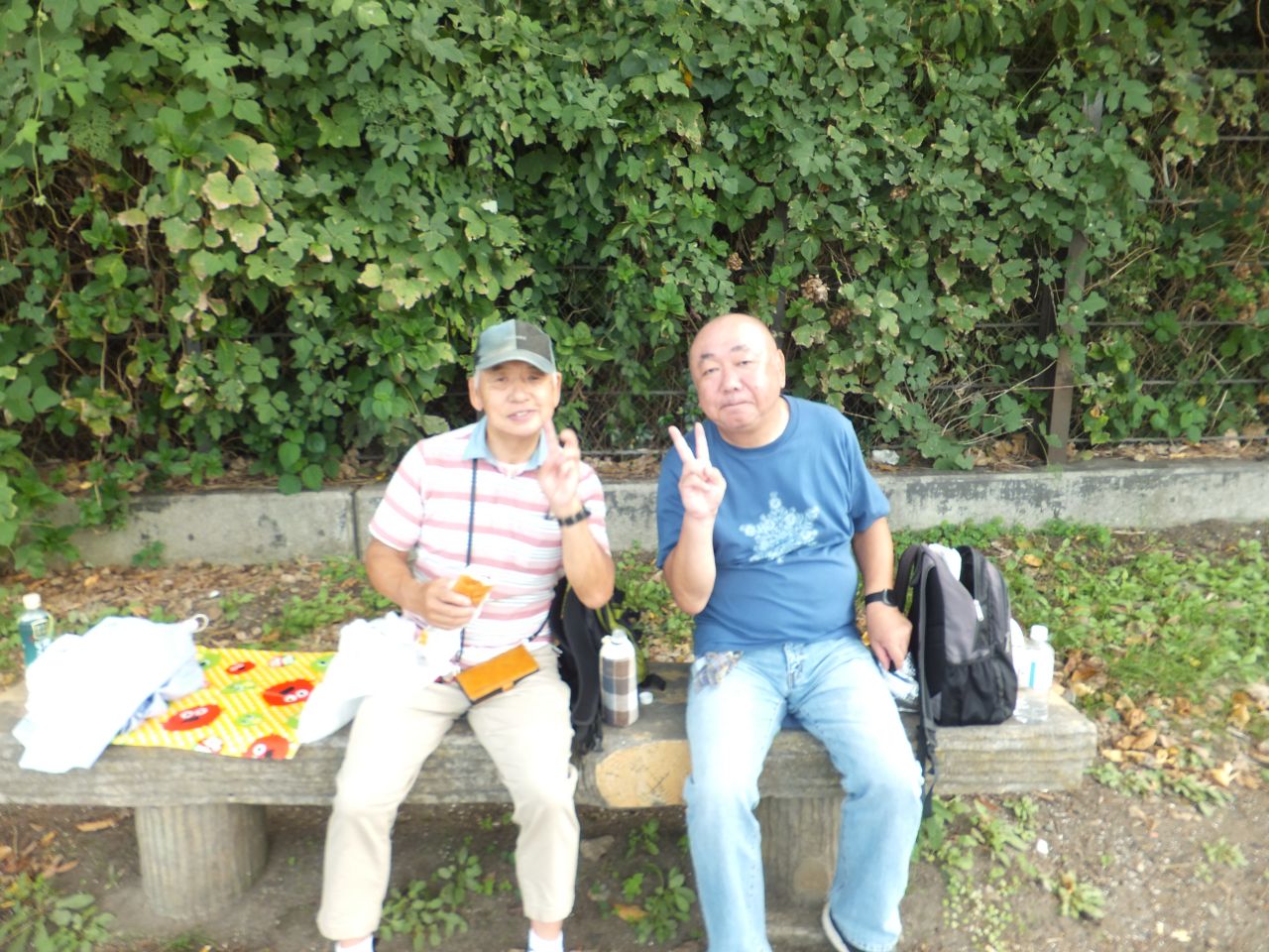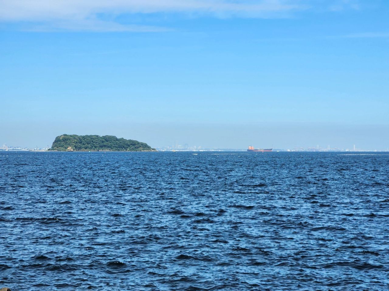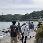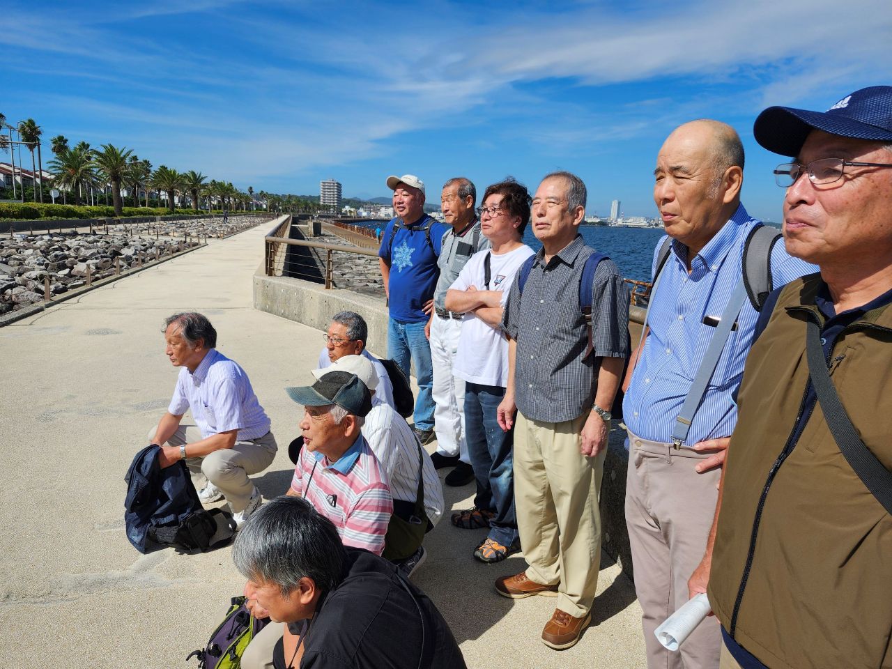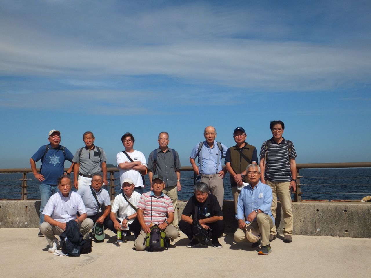 近くに猿島の見える海岸で、集合写真を撮影。前日の天気予報では曇りでしたが、当日は秋晴れとなり東京湾越しに房総半島がくっきりと見え、左手と多くには富士山も望め絶好の眺望でした。各自スマホ片手に暫し思い思いに写真撮影タイムとなりました。