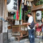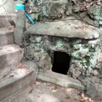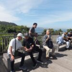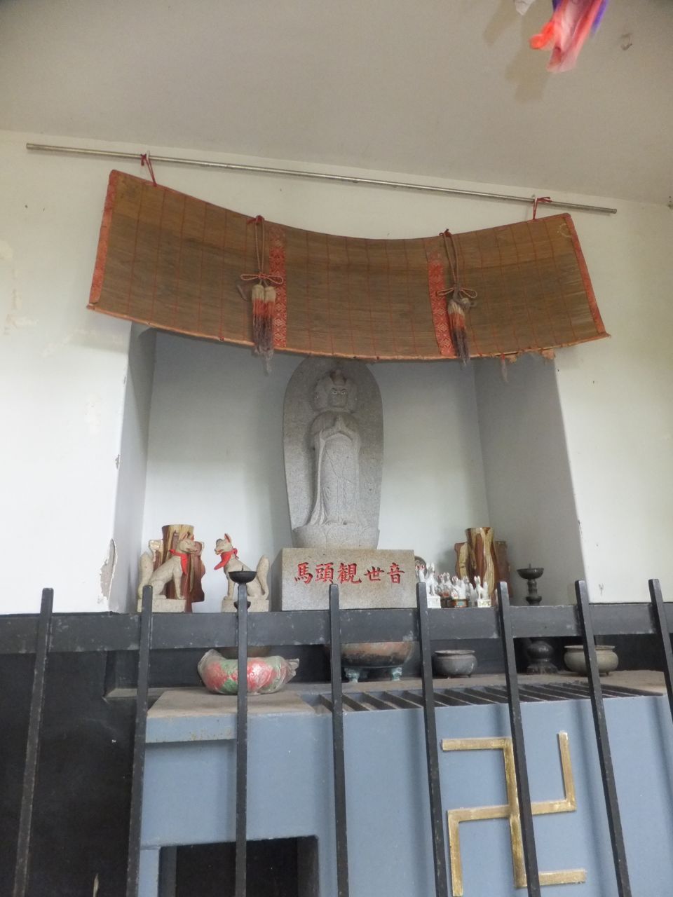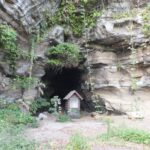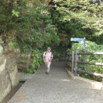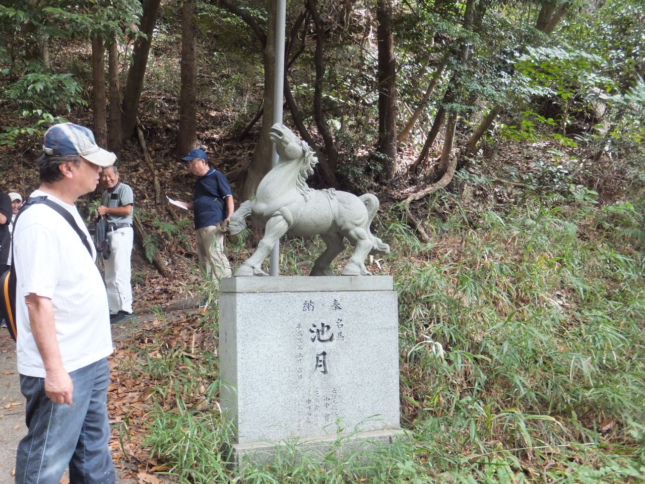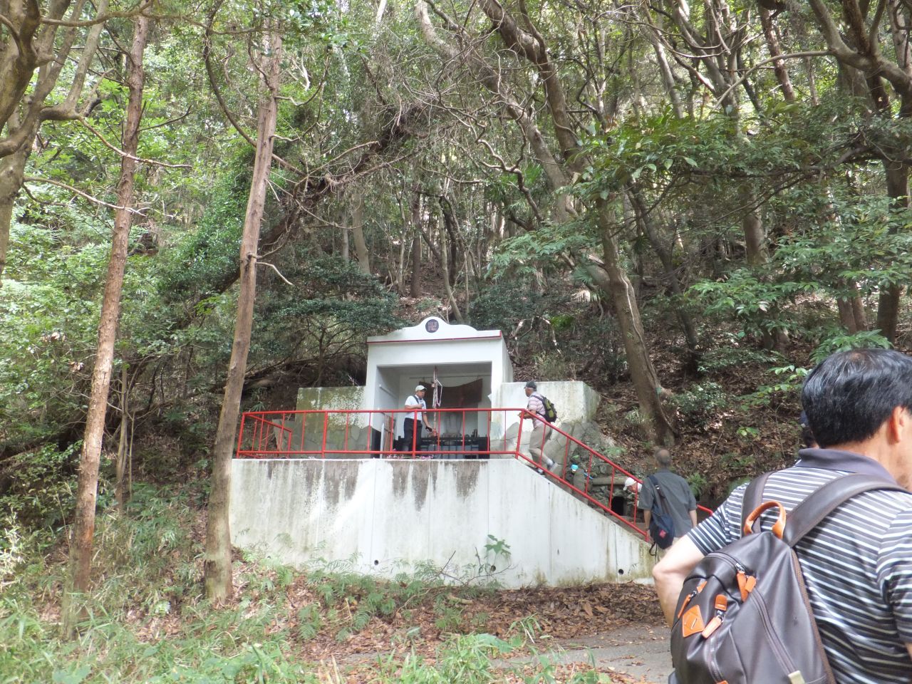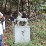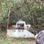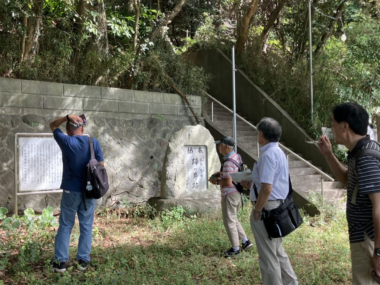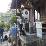 次の目的地“馬頭観音”を目指し、強い日差しを受けながらも海風が心地よく、海沿いの遊歩道を会話を楽しみつつ歩を進めます。遊歩道を外れ暫く坂道を上り、“馬頭観音”へ到着。昔海を渡ってやってきた馬が、足で岩を掘ったところ、清水が湧いてきたといわれる観音様です。