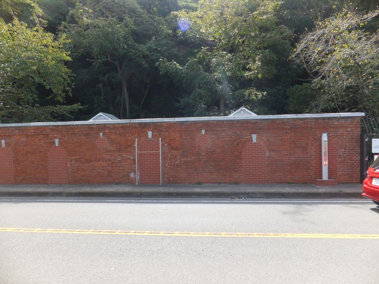 小休止した後“走水第一隧道・第二隧道”の狭いトンネル道を抜け、“走水水源地”に向かいます。国道16号脇にある“走水水源地”の中には入れませんが、レンガ造りの建物貯水池は