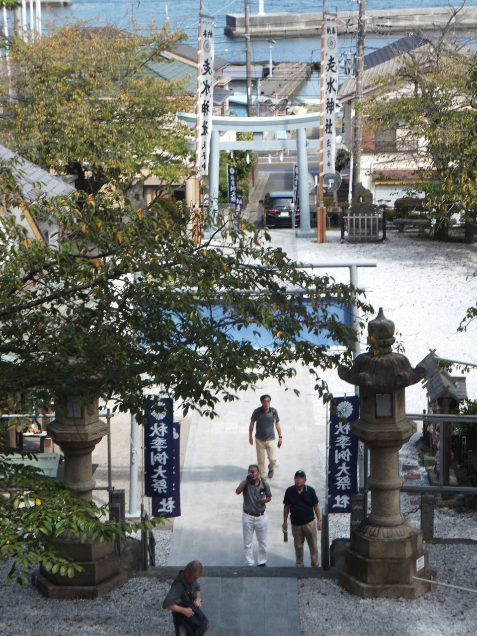 少し休憩した後、御所ヶ崎緑地/走水低砲台跡を経由し、走水神社へ向かいます。走水神社は、日本武尊(やまとたけるのみこと)とその妃・弟橘媛命(おとたちばなひめのみこと)を祀られた神社です。長い階段を上った本殿にお参りした後、観音崎灯台に向かいます。