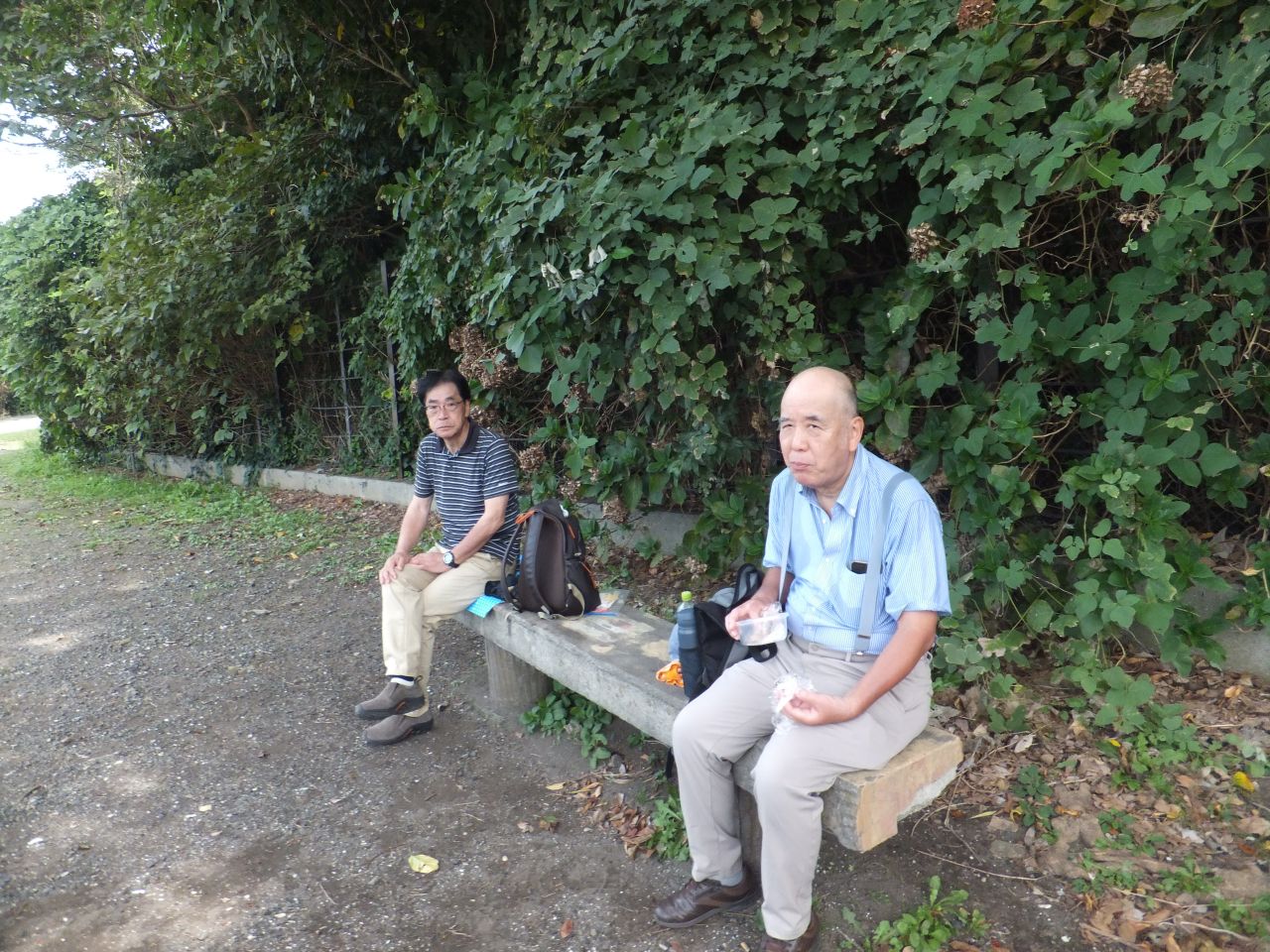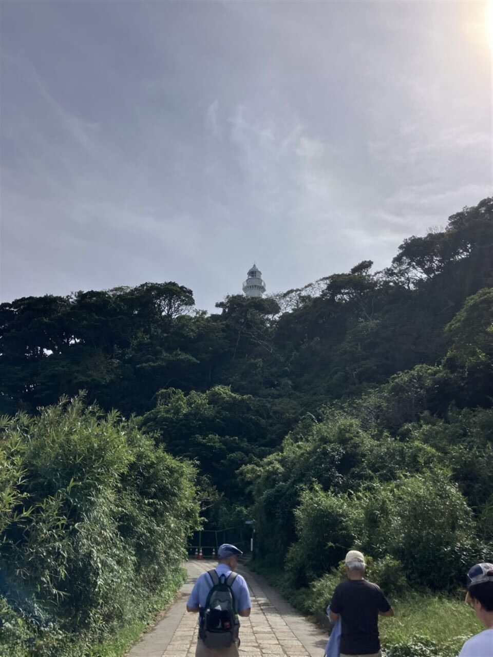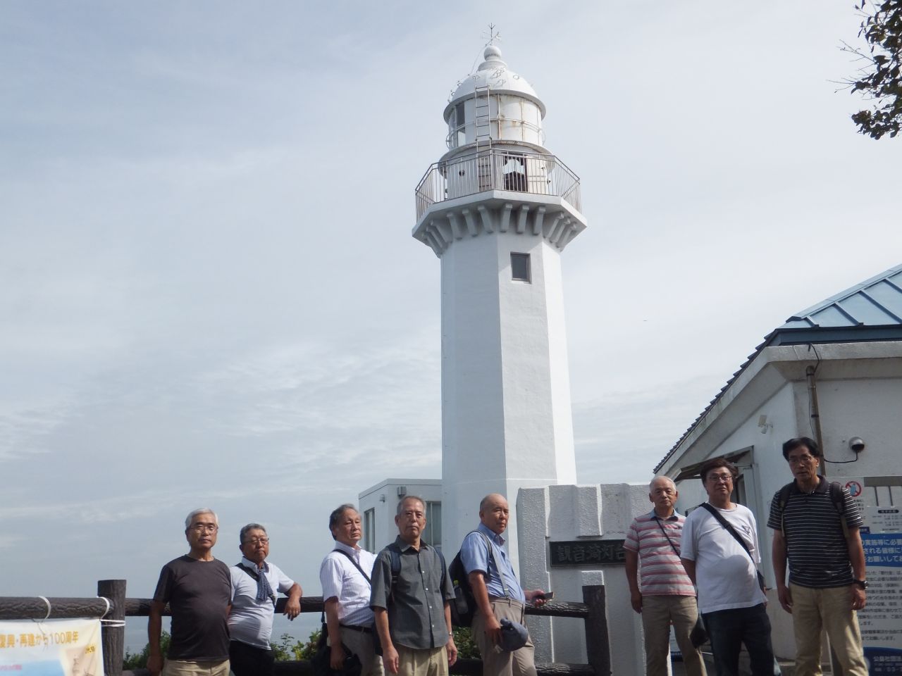 暫く国道沿いを歩き、海辺の遊歩道に逸れ潮風を受けながら観音崎公園へと向かいます。ようやく目的地に着き昼食休憩です。それぞれ昼食をとった後、まだ元気の残っているメンバーで灯台へ向かいます。急な坂を息を切らしながら登り灯台へ到着。記念撮影をし皆の待つ公園に下り、バスに乗り込み帰路へ着きました。