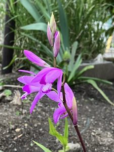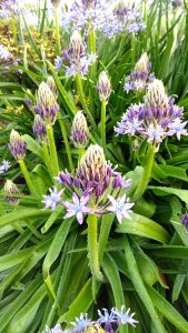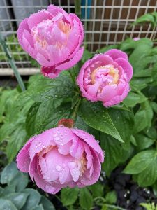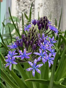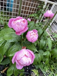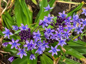 左から ・大和市コミュニティセンターのオオツルボとシラン(4/26撮影) ・我が家のシャクヤク×2点(5/10撮影)