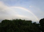 朝のウォーキング、空には虹、足元には白い曼殊沙華を見ることができました。